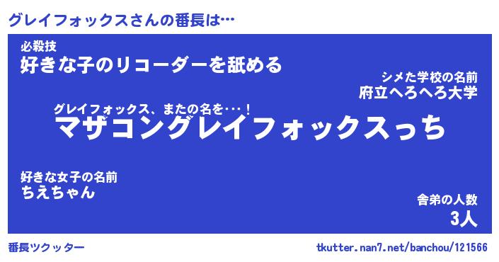 | ヒーロー風カッコイイあだ名 | 『スーパーグレイフォックス』 |