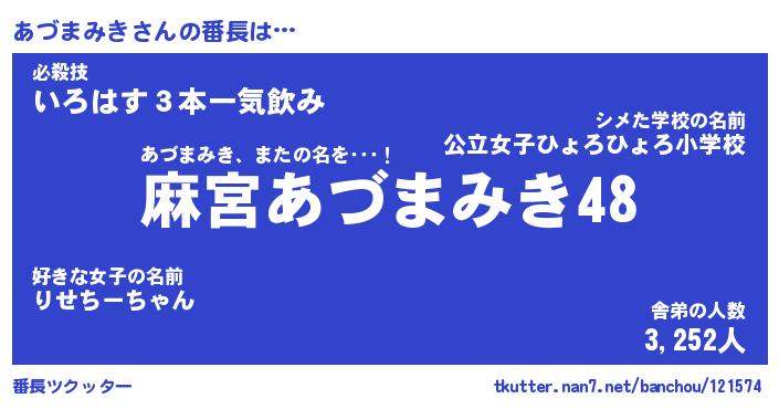 | ファンタジー風あだ名 | 『アヅフェル』『エターナルアヅマミキー』 |