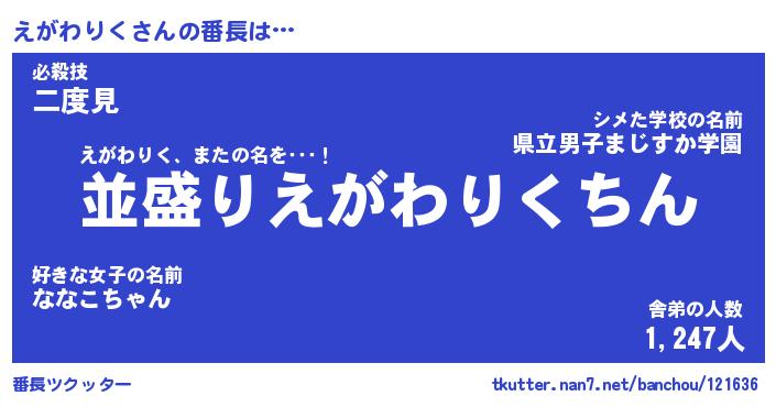 | 伝説のあだ名 | 『不死鳥のスナイパーえがわりく』 |