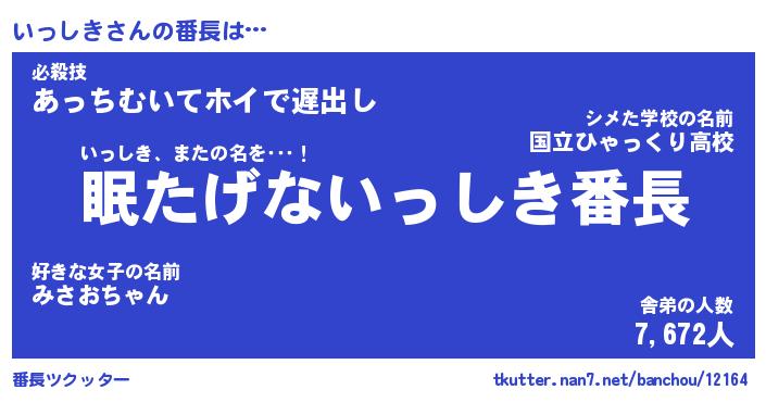 | 意味不明あだ名 | 『ペロリンいっしき』『永久保存いっしき』 |