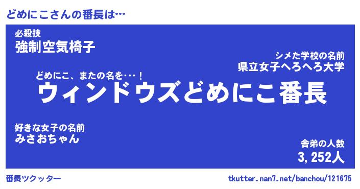 | 伝説のあだ名 | 『伝説のスナイパーどめにこ』 |