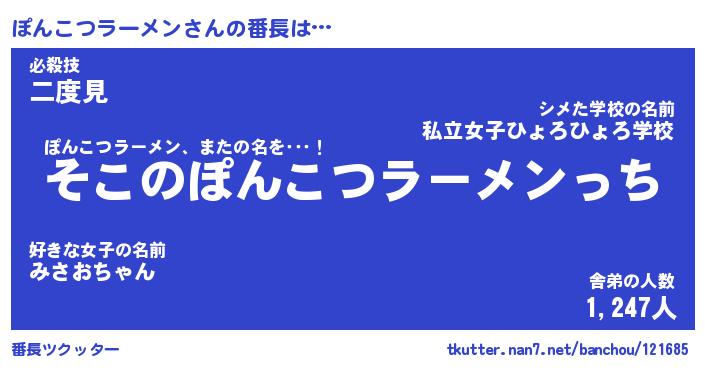 | ヘコむあだ名 | 『ぽんにー』『なまこ酢』『ぽんを』 |