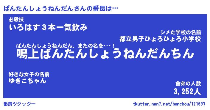| ポケモン風あだ名 | 『バンチュウ』『バンタダネ』 |