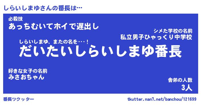 | 意味不明あだ名 | 『ペロリンしらいしまゆ』 |
