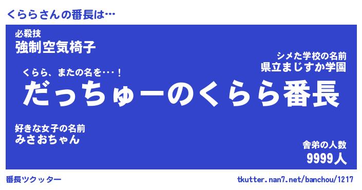| ヘコむあだ名 | 『くらもー』『牛乳』『くらっ子』 |