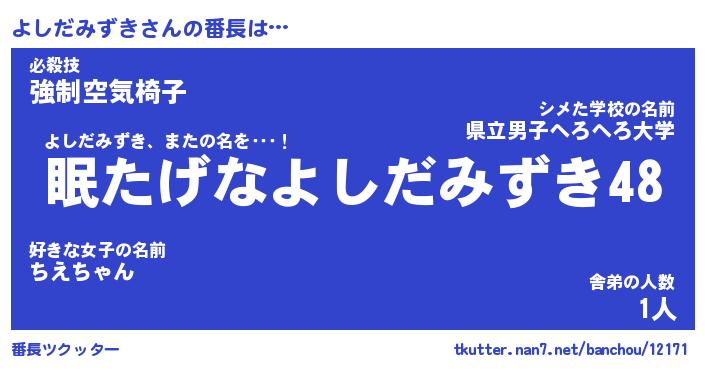 | ヘコむあだ名 | 『よしにゅー』『なまこ酢』 |