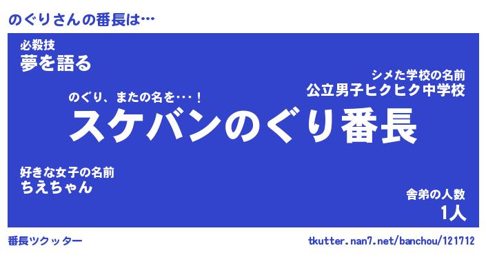 | 意味不明あだ名 | 『ペロリンのぐり』『のぐりフォーエバー』 |