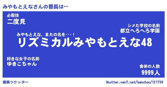 | 伝説のあだ名 | 『伝説のスナイパーみやもとえな』 |