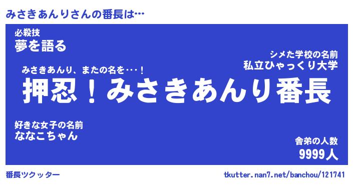 | 伝説のあだ名 | 『封印されしスナイパーみさきあんり』 |