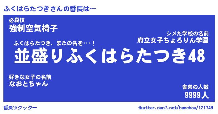 | 肩書あだ名 | 『ふくはらたつき店長』 |