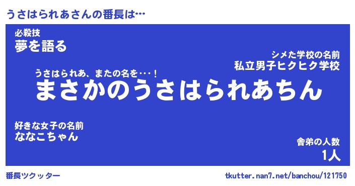 | 肩書あだ名 | 『うさはられあ店長』『うさはられあ班長』 |