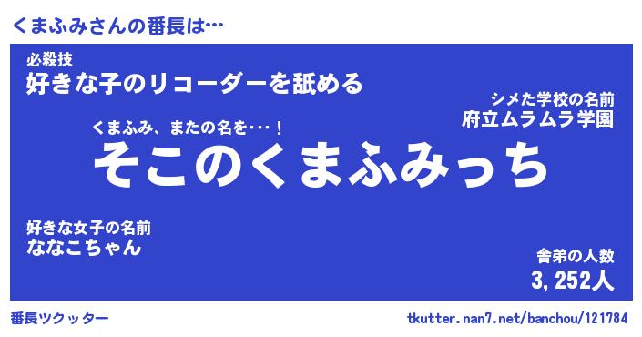 | 意味不明あだ名 | 『ペロリンくまふみ』『永久保存くまふみ』 |