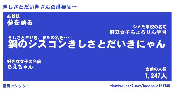 | 男性向けラノベタイトル風あだ名 | 『キシサトダイキアートオンライン』 |