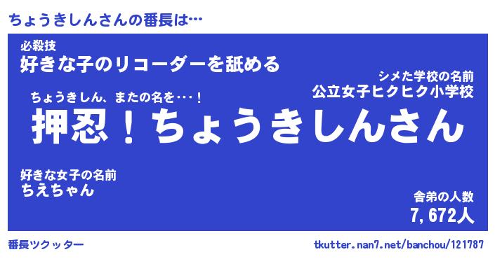 | 肩書あだ名 | 『ちょうきしんCEO』『ちょうきしん班長』 |