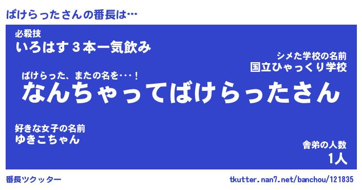 | ヒーロー風カッコイイあだ名 | 『スーパーバケラッタ』『幻影騎士バケ』 |