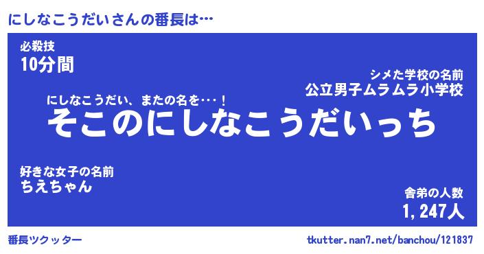 | ヒーロー風カッコイイあだ名 | 『スーパーニシナコウダイ』 |