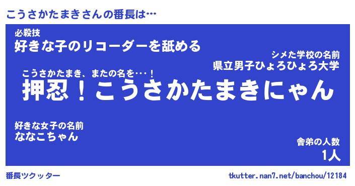 | 伝説のあだ名 | 『封印されしスナイパーこうさかたまき』 |