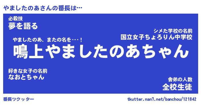 | 2回繰り返すあだ名 | 『やまやま』『ややまま』『うねうね』 |