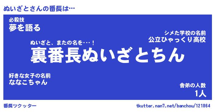 | ヒーロー風カッコイイあだ名 | 『スーパーヌイザト』『黄金騎士ヌイ』 |