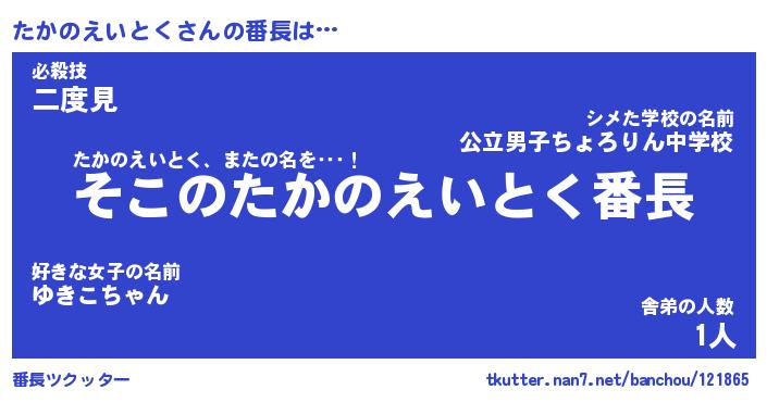 | 男性向けラノベタイトル風あだ名 | 『たかのえいとくの憂鬱』 |