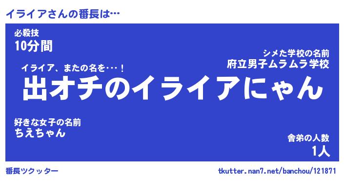 | 意味不明あだ名 | 『ペロリンイライア』『永久保存イライア』 |