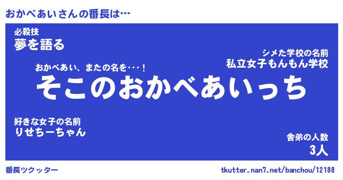 | ヘコむあだ名 | 『おかにー』『豆乳』『おかっぺ』 |