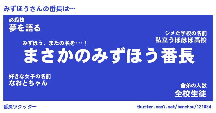 | 伝説のあだ名 | 『伝説のスナイパーみずほう』 |