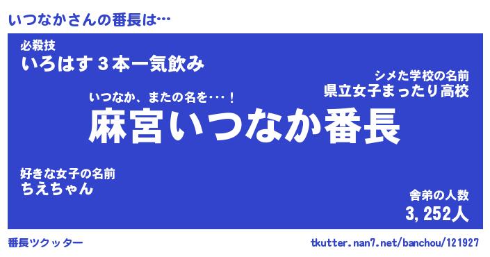 | 意味不明あだ名 | 『ペロリンいつなか』『永久保存いつなか』 |