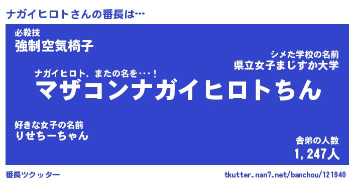 | ヒーロー風カッコイイあだ名 | 『スーパーナガイヒロト』『幻影騎士ナガ』 |
