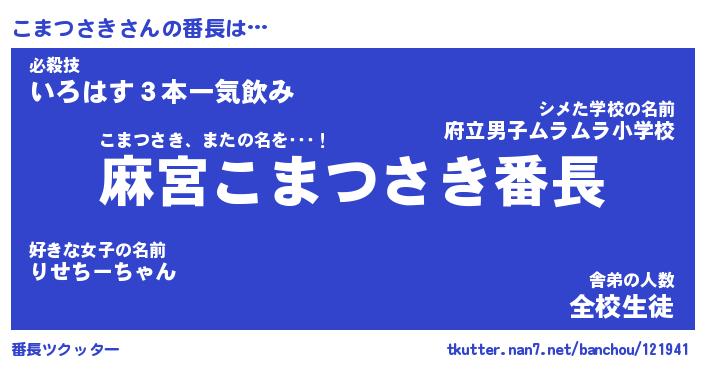 | ポケモン風あだ名 | 『コマチュウ』『コマツダネ』 |