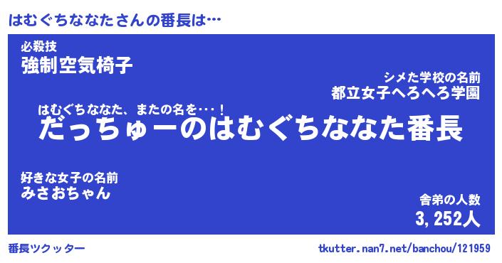 | 男性向けラノベタイトル風あだ名 | 『はむぐちななたの憂鬱』 |