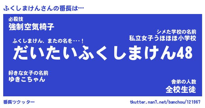 | 肩書あだ名 | 『ふくしまけん店長』『ふくしまけん班長』 |