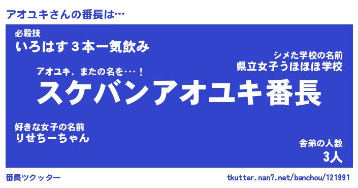 | 肩書あだ名 | 『アオユキ店長』『アオユキ総理大臣』 |