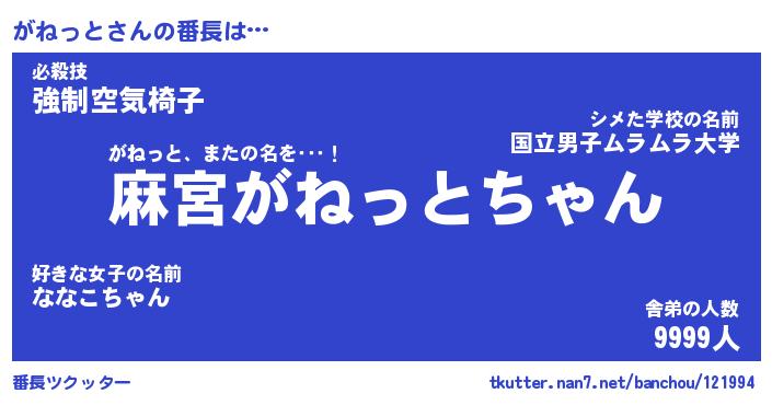 | ピコ太郎風あだ名 | 『ガコ六郎』『ピガ三郎』『ガネ次郎』 |