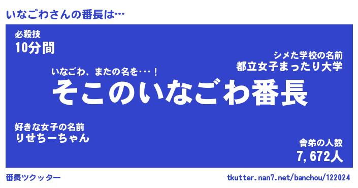 | ピコ太郎風あだ名 | 『イコ四郎』『ピイ十郎』『イナ八郎』 |
