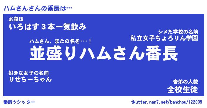 | ヒーロー風カッコイイあだ名 | 『スーパーハムサン』『幻影騎士ハム』 |
