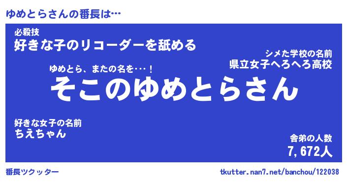 | 肩書あだ名 | 『ゆめとら御曹司』『ゆめとら国家主席』 |