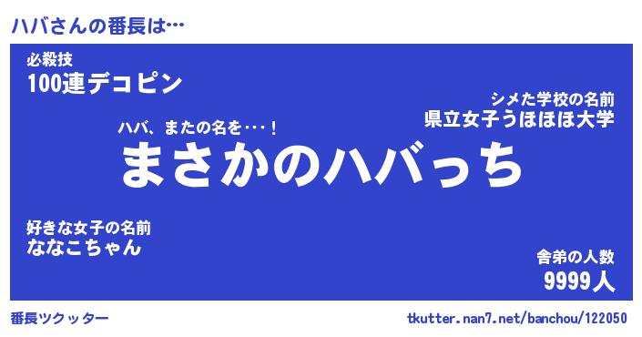 | ポケモン風あだ名 | 『ハバチュウ』『ハバダネ』『ヒハバ』 |