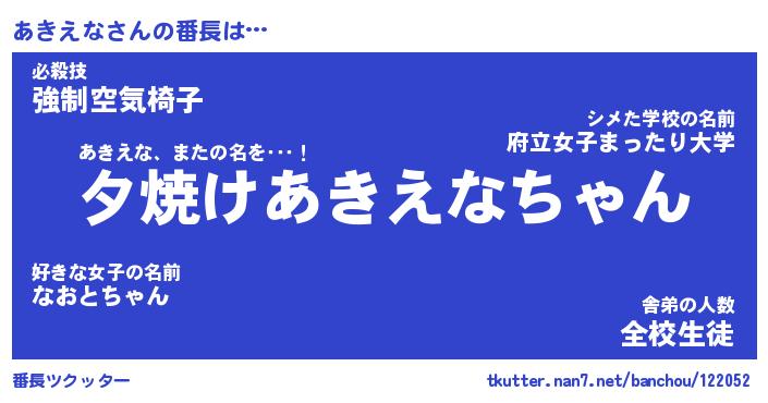 | 意味不明あだ名 | 『ペロリンあきえな』『永久保存あきえな』 |