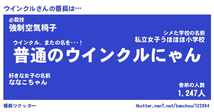 | ヒーロー風カッコイイあだ名 | 『スーパーウインクル』『暗黒騎士ウイ』 |