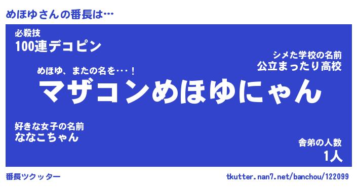 | 意味不明あだ名 | 『ペロリンめほゆ』『めほゆフォーエバー』 |