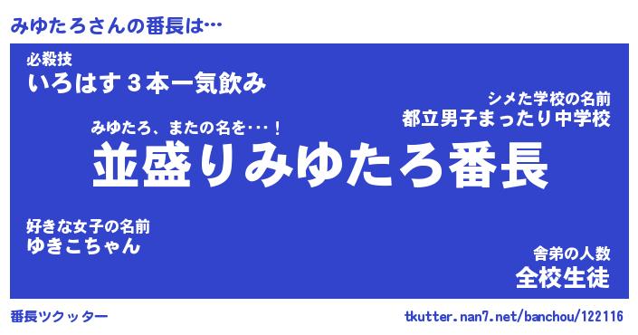 | 意味不明あだ名 | 『ペロリンみゆたろ』『永久保存みゆたろ』 |