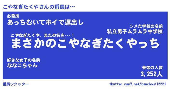 | ヘコむあだ名 | 『こやもー』『なまこ酢』『こやっ子』 |