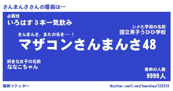 | ヒーロー風カッコイイあだ名 | 『スーパーサンマンサ』『銀牙騎士サン』 |