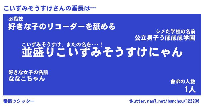| 男性向けラノベタイトル風あだ名 | 『こいずみそうすけの憂鬱』 |