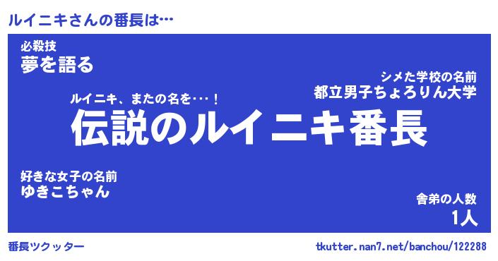 | 意味不明あだ名 | 『ペロリンルイニキ』『永久保存ルイニキ』 |