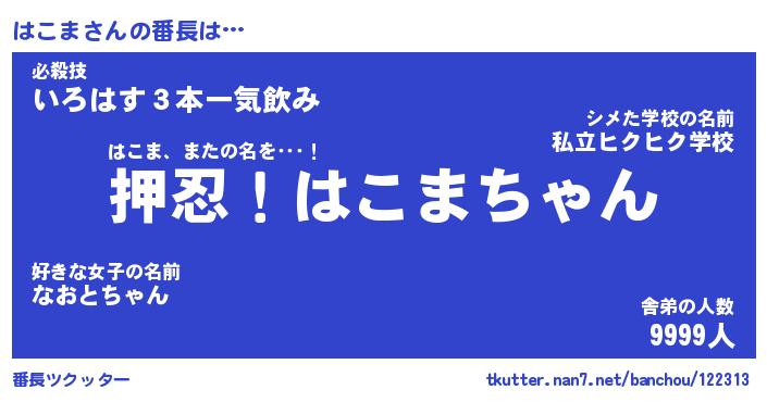 | ヒーロー風カッコイイあだ名 | 『スーパーハコマ』『ウルトラはこまマン』 |