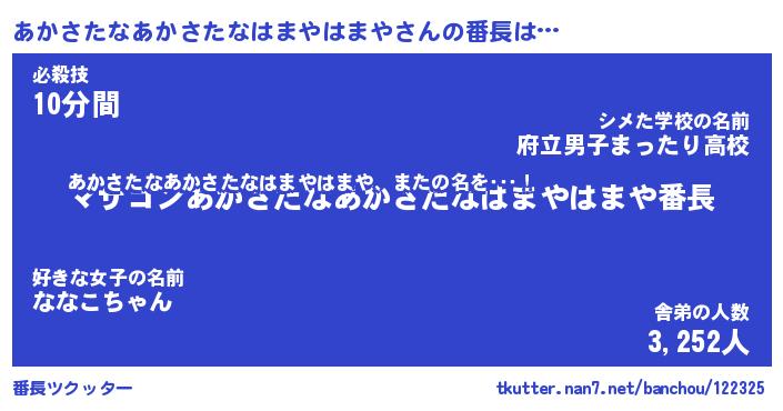 | ヒーロー風カッコイイあだ名 | 『スーパーアカサタナアカサタナハマヤハマヤ』 |