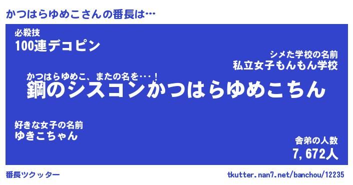 | 伝説のあだ名 | 『封印されしスナイパーかつはらゆめこ』 |