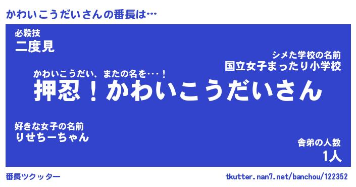 | 恥ずかしいあだ名 | 『プリティーかわいこうだい』『かわちん』 |